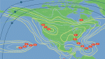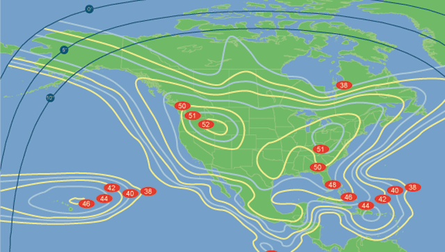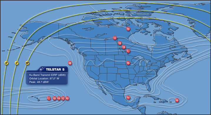 on the arc (signal is weaker) or the coverage of the satellite (footprint) is